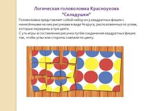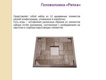 - познакомит детей с играми-головоломками и будет интересен не только детям, но и взрослым, в нём каждый сможет найти интеллектуальное задания по душе.